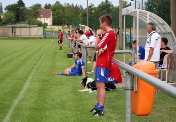 Nach zehn ausgeglichenen Minuten in Hälfte zwei kannte das Spiel erneut fast nur noch eine Richtung. Unterwellenborn weiterhin das spielstärkere und frischere Team. Nach 62. Minuten folgerichtig das 1:0. Während die Gäste dabei nur zuschauten, spielte Langhammer nach Diagonalpaß das Leder von der Grundlinie in den Torraum, wo Hohmuth nur noch seinen Fuß hinhalten brauchte. Den nächsten Hochkaräter verbuchte Müller-Sachs, doch in guter Position schoß er aus Nahdistanz daneben (66.). Das 2:0 durch einen von Routinier Spitzner eiskalt verwandelten Foulefmeter (78.) wurde dem Spielverlauf weiter gerecht. Doch ganz mit leeren Händen wollten die Gäste die Heimreise dann auch nicht antreten. Nachdem bereits in der 81. Minute ein Freistoß für großes Durcheinander im Stahl-Strafraum sorgte, brachte ein weiterer, von Hohl getretener Standard den Anschlußtreffer. Lukes war mit dem Kopf zur Stelle und bugsierte das Leder ins Dreiangel (87.). Wohl in Anbetracht des aufziehenden Unwetters pfiff Schiedsrichter Schröter die Partie vorzeitig ab. Nichts mehr mit möglichem Ausgleich. Mit dem Spielverlauf hätte der dann aber auch nichts zu tun gehabt.