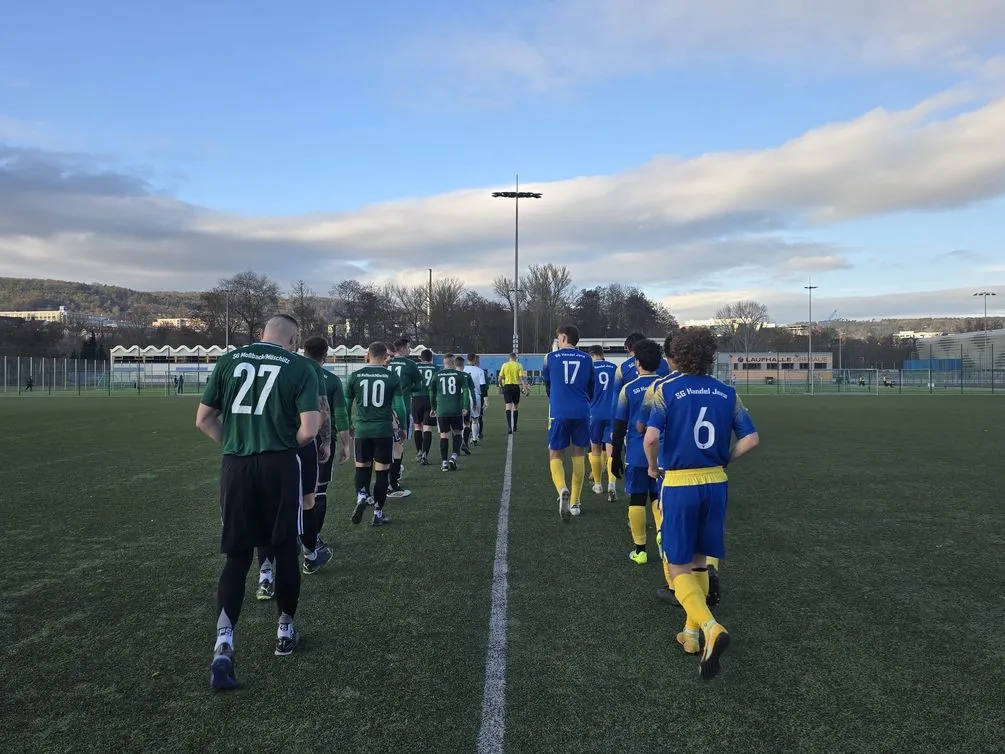 Was für ein schöner Sieg im letzten Spiel des Jahres! Unsere Jungs der SGM haben bei der SG Handel Jena einen guten Job gemacht. Trotz Minikader haben sie ihre Aufgabe auf ganzer Linie gemeistert. Mit den Toren von Jungspund Maximilian Otto, Altmeister Sandro Plietzsch, Geburtstagskind Niclas Krause und Türsteher Martin Fritz hat die Mannschaft einen souveränen 4:0-Sieg erzielt! Wir gratulieren von Herzen zu diesem Erfolg!